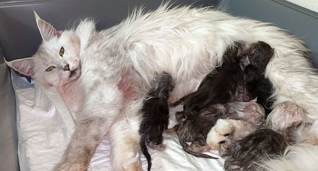 Langella - 7 ans ce mois-ci - a mis au monde trois énormes chatons. Deux garçons et une fille. Une ovation spéciale pour la reine |